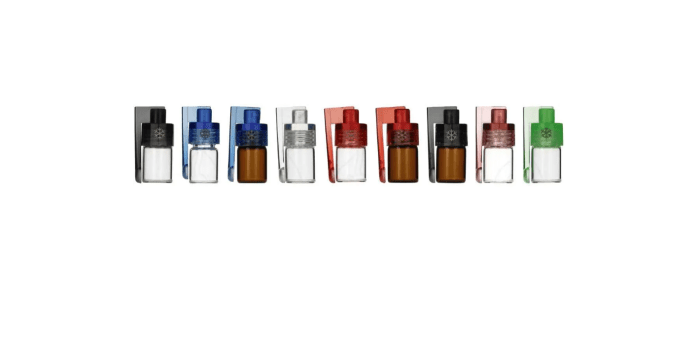 Snow Bottle Mini - Szklana buteleczka do tabaki z plastikową łyżeczką mix kolorów